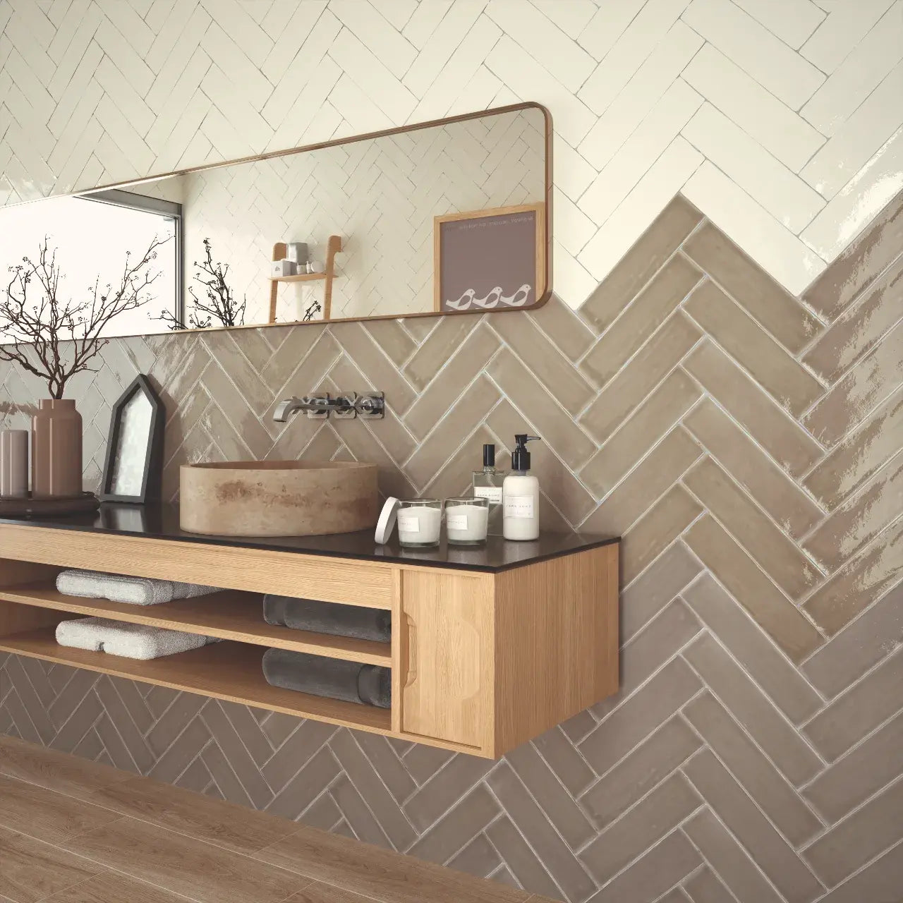 Onze beige wandtegels uit de Camden-serie van Estudio Cerámico bieden een elegante en tijdloze uitstraling voor elke ruimte. Deze glanzende tegels geven een luxe afwerking aan muren, wat zorgt voor een verfijnde en stijlvolle look.